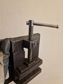 Vendo questa morsa da banco antica. È un pezzo robusto e ben costruito, ideale per lavori di precisione.