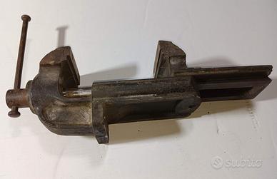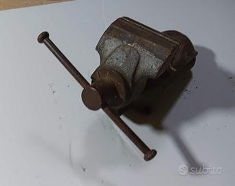 Morsa da banco in acciaio. Perfettamente funzionante. Ganasce larghe 100 mm / 10cm. Massima apertura 250 mm / 25 cm. Dotata di fori per fissaggio frontale e verticale.