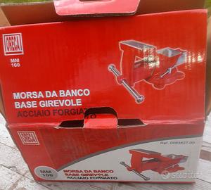Morsa da banco girevole 100MM colore rosso in acciaio marca ORECA Apertura 115MM Lunghezza ganasce 100 MM