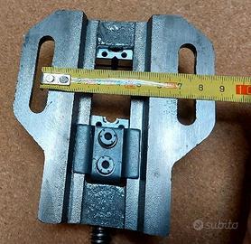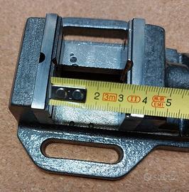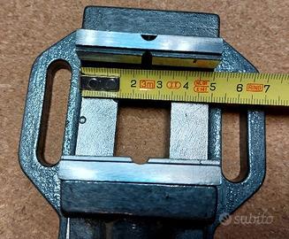 Morsa Mini , usata ma in buone condizioni Apertura : 30 mm Larghezza ganasce : 50 mm Corpo in ghisa - Ganasce in acciaio Fissaggio con asola interasse 75mm