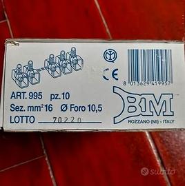 Svendo stecche morsetti terminali per connessioni forbox da 16 mmq. MARCA BM ART. 995. Diametro foro metallico dove alloggiare cavi da 10,5 mm. Vendo a scatole intere da 10 stecche da 10 cappuccetti ognuna. In tutto ci sono 100 cappuccetti a scatola.