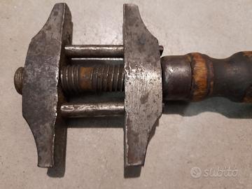 morsetto antico in acciaio con manico in legno per chiudere o per allargare, come estrattore