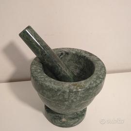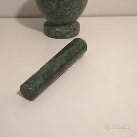 Elegante mortaio in marmo verde naturale completo di pestello.