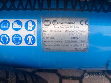 Vendo moto compressore Campagnola con motore Lombardini Diesel.L' attrezzo è accessoriato con 2 avvolgitubo più tubo ( 70 MT per avvolgitubo).Vero affare per chi vuole risolvere per sempre il problema di accendere e spegnere il trattore ogni volta che si scarica la bombola.Tenuto sempre in garage, fatte manutenzioni in modo maniacale, pari al nuovo.Utile sia per la raccolta delle olive ma anche per la potatura degli alberi.Vendo per cessata attività. Il prezzo è di euro 2500,00 trattabili,pagato quasi euro 4000,00.