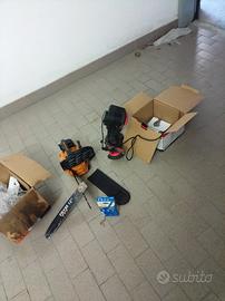 moto sega con catene aggiuntive e macchinetta mola catene