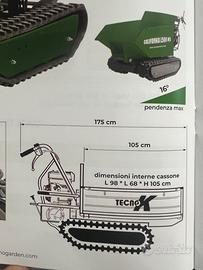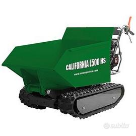 La motocarriola TecnoK CALIFORNIA L500 HS, ha una portata di 500 kg ed è equipaggiata con motore Loncin da 10 HP (302 cc), con ribaltamento idraulico a leva per facilitare il rovesciamento del materiale. La CALIFORNIA L500 HS, robusta e versatile, con tendicingoli, leva di sicurezza a rilascio e cassone dumper. Dotata di 4 rulli + 1 con cingoli larghi 180 mm per una maggior stabilità, è costruita con un solido telaio rinforzato in acciaio ad alta resistenza. Adatta per il trasporto di qualsiasi tipo di materiale in ambito edile, agricolo e forestale. Può raggiungere una pendenza massima di 16°.