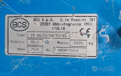 motocoltivatore bcs746 diesel avviamento elettrico fresa da 85cm zappette 80%4 marce avanti con inversore freni dx sx in dotazione anche aratro bivomere e assolcatore! Sicurezze a norma legge!