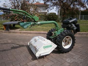 Motocoltivatore marca Ferrari, modello 71, con motore a benzina Acme AT 330W, 327cc. potenza 11 cavalli. Cambio a 5 marce (4 av + 1 rm) , differenziale con bloccaggio, fresa da cm.67, ruote misura 5.00-10 con interasse cm.47. Vendo per inutilizzo, revisionato, parte subito facilmente, gira bene ed è leggero e facile da manovrare grazie al differenziale, è molto ben bilanciato, la fresa è in ottime condizioni i coltelli sono come nuovi. Vendo a euro 700, disponibile per qualsiasi prova, visibile a Rivarolo Canavese in prov. di Torino. p.s. è un motocoltivatore motozappa costruito interamente in Italia dalla Ferrari di Luzzara (RE) azienda facente parte del gruppo BCS come anche la Pasquali. Equivalente ad altri modelli di marche come Goldoni, Nibbi, Bertolini, Valpadana, Grillo, SEP, Casorzo, ecc..