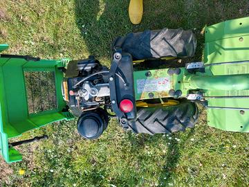 Trasmissione: Due ruote motrici di grande diametro con pneumatici scolpiti per trazione su terreni irregolari.