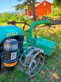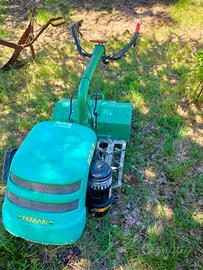 2 marce avanti e 2 indietro, innesto da leva della PTO, ruote gemellate in ferro (in gomma non incluse), leve per sterzata assistita, con regolazione rapida dell'inclinazione del manubrio.