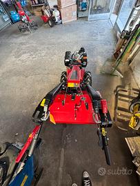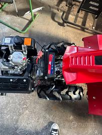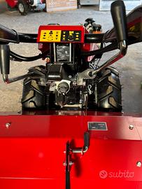 Motore 418 cc diesel avviamento elettrico Potenza max:12 cv Scatola cambio in alluminio, cambio ad ingranaggi con 3 marce avanti e 3 retromarce Stegole reversibili di 180° e regolabili in altezza Differenziale velocità PTO 990 giri Dimensione pneumatici 5.00-10
