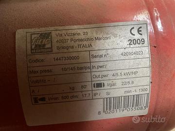 Vendo motocompressore Fiac Honda gx come nuovo. Alimentazione benzina, pressione massima 10bar, serbatoio 22L, potenza 4kw 5.5 hp, movimentazione carrello a spinta, aria aspirata 500 L/min, peso 80kg. Valuto offerte.