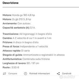 vendo per inutilizzo motofalciatrice sep BC 90 con motore Honda 5cv pari al nuovo,usata pochissimo. con barra falciante da 90 cm valuto scambio o permute con motocoltivatore/motozappa