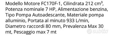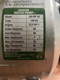 Vendo motopompa a scoppio acquistata circa 1 mese fa quindi nuovissima .La sto vendendo per un errato acquisto e se richiesto posso vendere insieme ad una tubo manichetta da 80mm.