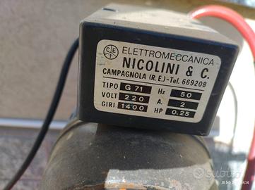 Motore: Elettrico Elettromeccanica Nicolini, tipo G 71, alimentazione standard 220V (0,25 HP - 1400 giri/min).