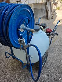 Motopompa carrellata per irrorazione e diserbo con serbatoio da 120 litri di capienza. Equipaggiato con pompa da irrorazione da 25 bar e potenza di 2.5 Hp il carello è equipaggiato con lancia da irrorazione e tubazione. Consigliato per irrorare campi, giardini e orti di media e grande dimensione. Perfettamente funzionante e in ottime condizioni, utilizzate pochissime ore. Prova video o sul posto. Caratteristiche e accessori in dotazione: SERBATOIO Polietilene CAPACITÀ SERBATOIO (lt) 120 FILTRO ASPIRAZIONE Esterno TUBO IRRORANTE 10 mt in PVC 50 Bar e lancia a leva da 60 cm CARRELLO A ruote gommate con doppio manico DIMENSIONI (cm) 160x65x70 MOTORE RATO R210 MODELLO AMG 101 CILINDRATA (cc) 97.7 POTENZA MAX (Hp) 2.5 AVVIAMENTO Manuale ALIMENTAZIONE Benzina Verde OLIO Multigrado SAE 10W40 POMPA IDROMECCANICA BERTOLINI MODELLO TRIAL RT4 MEMBRANA 2 PORTATA (lt/min) 17 PRESSIONE (bar) 25 POTENZA ASSORBITA (Hp) 1 ASPIRAZIONE (mm) Ø 13 PESO LORDO (Kg) 45 AVVOLGITUBO con 50 m tubo PVC Opzionale Completo di 50 metri di tubazione in PVC da 50 bar. Prezzo Trattabile!