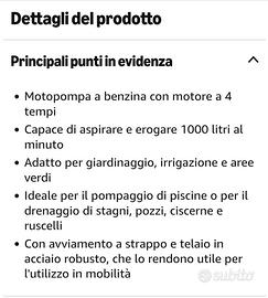 Vendo bellissima moto pompa usata solamente tre volte per pompare Aqua dal mio pozzo perfettamente funzionante e poi rimessa nella sua scatola più aggiungo due riduttori da un pollice e mezzo nuovi per maggiori informazioni contattatemi pure grazie