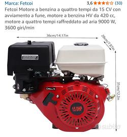 Motore 4 tempi a benzina 15 HP nuovo. Comprato su Amazon ( c'è la foto che potete vedere tutte le caratteristiche tecniche) per un totale compreso di spedizione di €220. Usato solo per due minuti per fare un progetto che ho abbandonato... Ritiro a mano, qualsiasi prova. prezzo non trattabile.