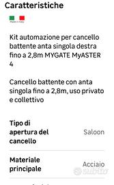 vendo motore apricancello u anta apertura dx My Gate kit completo*+ 2 fotocellule aggiuntive *braccio+centralina+2 fotocellule +2 telecomandi