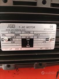 Vendo Motore Alta Coppia, 1400 giri, Monofase 4 Poli Con Disgiuntore.