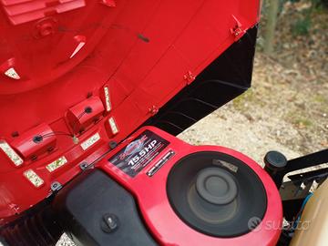 Trattorino rasaerba Castelgarden,usato e funzionante,motore Briggs & Stratton 15,5 hp,cambio idrostatico con avanzamento a pedale,piatto bilama da 102 cm,raccolta posteriore.