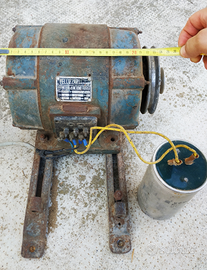 Vendo motore elettrico PELLIZZARI, asincrono trifase 1 CV (dati nell'etichetta della foto), con puleggia, condensatore, collegamenti elettrici "vintage" e staffe di fissaggio alla base con scorrimento.
