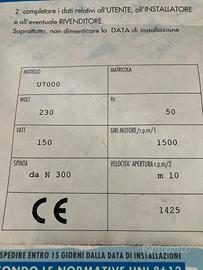 motore per cancello battente CAME U 7000 come specifica allegata