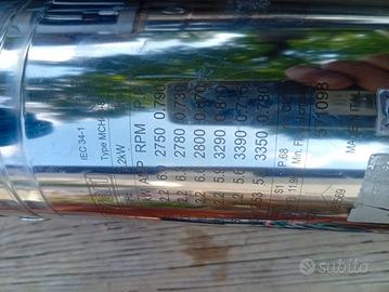 motore trifase 3 hp 2,2kw per pompa immersione pozzo, ha lavorato pochissimo, sostituito per cambio di tensione da 380v a 220v.