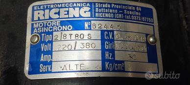 Motore Trifase Asincrono 220/380 V - 0,75 kW 2800/700 giri/min