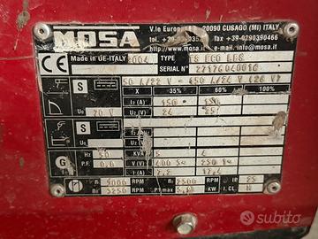 Vendesi Mosa motosaldatrice e generatore di corrente del 2004. É una Ts Eco LBS a benzina da 5.9 Kw. Vengono venduti anche i cavi per saldare