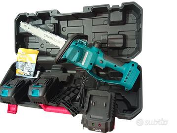 Bellissima e potente motosega a batteria 12 pollici con display a led , che segna carica della batteria. Modello 2026 , con motore Brushless di alta potenza, efficienza e longevità. La motosega non necessita di montaggio della barra guida e catena , in quanto la grande e capiente valigetta la contiene già assemblata. Incluse : 1 grande valigetta per il trasporto, 1 motosega, 2 batterie al litio da 10 amper e 6000 mha cadauna , centralina di ricarica, 1 catena di ricambio, para schegge , chiave per smontaggio. Prodotto di alta qualità e potenza con motore Brushless, no motore a spazzola . Garanzia 1 anno sul motore.
