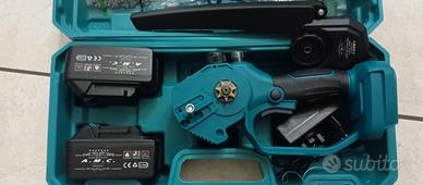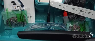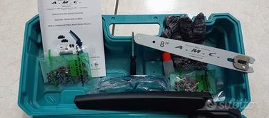 Motosega a batteria con molti accessori, tra cui 2 batterie doppia catena da 8 pollici, occhiali protettive ecc.