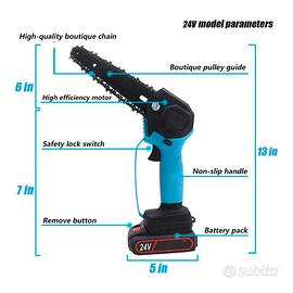 La motosega a batteria con lama da 8 pollici è lo strumento perfetto per la potatura di rami di diverse dimensioni, offrendo un taglio netto e preciso con il massimo della sicurezza e della praticità. Grazie alla doppia batteria da 48V, garantisce un’autonomia prolungata per lavorare senza interruzioni, rendendola ideale per la manutenzione del giardino e il fai-da-te. Il design compatto ed ergonomico consente di utilizzarla con una sola mano, riducendo l’affaticamento e migliorando il controllo durante l’uso. Inoltre, la motosega è dotata di doppia impugnatura con un comodo sostegno per la mano, che la rende ancora più stabile e sicura durante le operazioni di taglio.
