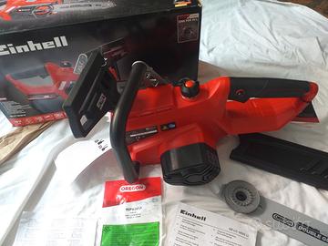 Motosega a batteria professionale della Einchell . Nuova e mai usata ancora imballata nella sua scatola originale come da foto, completa di tutti i componenti di scatola in confezione con batteria da 2000 Amp. e carica batteria. Pagata 170 euro