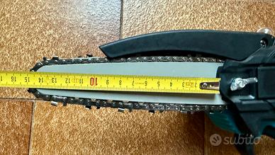 Motosega a batteria nuova . Provvista di lama da 15 cm e due batterie. Ideale per potature e piccoli lavori in giardino, bosco, frutteti.