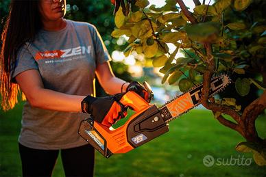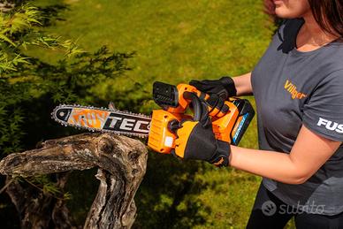 Motosega a batteria Villager Zen CS 3040 (solo attrezzo) Centrale elettrica compatta: la motosega a batteria ZEN Villager CS 3040 unisce la portabilità alle alte prestazioni. È dotata di un motore brushless con una potenza nominale di 36 V (max. 40 V) e una velocità del motore rapida di 7500/min. Dotata di barra e catena da 12" e un passo della catena da 3/8", offre una velocità massima della catena di 14,5 m/s. La sega include un serbatoio dell'olio da 150 ml e offre una velocità di lubrificazione regolabile di 4-10 ml/min, ottimizzando la durata della catena. Nonostante la sua potente uscita, mantiene un basso livello di rumore di 106 dB ed è incredibilmente leggera, appena 1,9 kg, migliorando il comfort e la manovrabilità dell'utente.