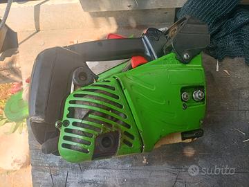 la motosega è usata, con segni e piccole rotture plastiche esterne