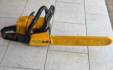 Vendo motosega alpina 450 serie professionale del 2004. La motosega viene usata regolarmente, perfettamente funzionante. Frizione e pompa dell’olio appena sostituiti. Cilindrata 45 cc e monta una barra oregon da 40 cm.