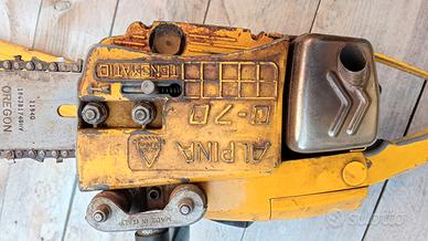 vendo motosega alpina A70 vintage, condizioni come da foto, da mettere in moto, ho anche un po di catene comprese nel prezzo, per altre informazioni telefonatemi. tel 3294454455