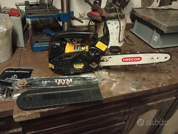 motosega semi nuova ferma da un po'. si accende ma si sente k riceve troppa aria quindi presumo sia da carburare. la vendo senza la barra Oregon ma con una nuova con carter nuovo e catena nuova. vendo come da sistemare carburare.