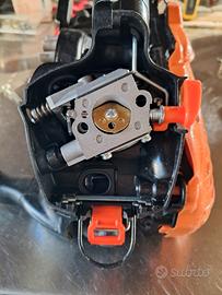 Motosega completamente revisionata e pulita in tutte le sue parti. Macchina completamente originale. Ha lavorato da privato, per poche ore l'anno. Quindi pari al nuovo. Carburatore revisionato con cambio membrane.