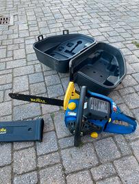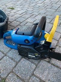 Vendo motosega Eingell obbistica. La motosega è funzionante, usata 4/5 ore. Il cavo di accensione della candela si è strappato e non è mai stata riparata. Un qualsiasi negozio di giardinaggio è in grado di cambire il contatto della candela. Specifiche Tecniche del Motore * Cilindrata: 38 cm³. * Potenza: 1,4 kW, equivalenti a circa 1,9 CV (HP). * Tipo di Motore: Motore a scoppio a 2 tempi, alimentato a miscela. * Capacità Serbatoio Carburante: 300 ml. * Capacità Serbatoio Olio Catena: 180 ml. * Prestazioni di Taglio * Lunghezza della Barra: 40 cm, ideale per tronchi di medio diametro. * Lubrificazione: Dotata di pompa dell'olio automatica per garantire lo scorrimento fluido della catena durante il lavoro. Prezzo trattabile perchè un 15/20 euro può costare la riparazione.