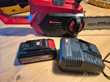 Motosega Einhell 18V Power X-Change con batteria e caricabatteria.