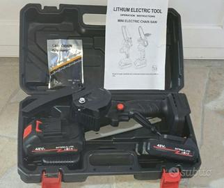 Mini Elettrosega A Doppia Batteria 48v Motosega 6" Elettrica Tagliarami + Valigia Caratteristiche : 1 x Elettrico Sega A Catena 2 x Batteria 1 x Caricabatteria 1 x Manuale Utente 1 x Cacciavite 1 x Chiave Materiale: Metallo Catena In Acciaio Tensione: 48VF Potenza della batteria: 1200WW,2900 mAh Piastra di guida Lunghezza: 6 Pollici Catena di Velocità: 5M/S Motore elettrico: Forte Motore A Magnete Catena: Regolazione Rapida Dimensioni di taglio: <100 millimetri Batteria: 2900 mAh