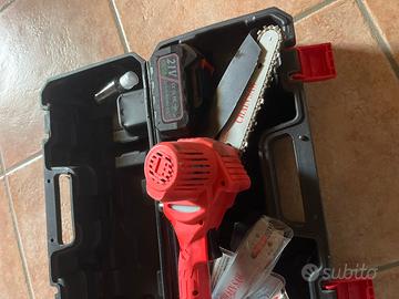 Motosega elettrica compatta con due batterie lame di scorta box per portre vendo per inutilizzo
