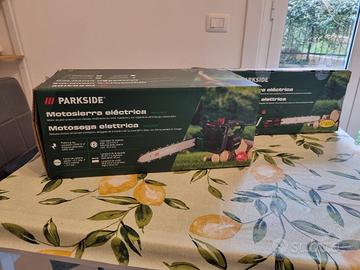 Vendesi stupenda motosega elettrica a cavo Parkside 2200. Nuova da negozio, mai usata, con cartellino e confezione originale, completa di olio e istruzioni.