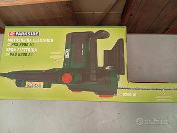 Motosega elettrica Parkside PEKS 2200 A1. Prodotto usato solo per due tagli. Inoltre è presente l'olio lubrificante