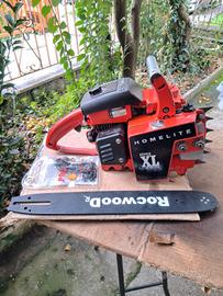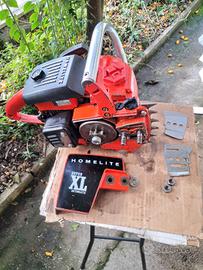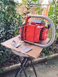 Motosega d'epoca vintage funzionante,da carburare,la barra e la catena di 35 cm è nuova ma non è compatibile con questa motosega,inoltre la catena ad occhio sembra avere qualche maglia di troppo,dunque in caso di installazione bisogna chiedere ad un meccanico/esperto. Sembra perdere un po di olio dal tubo in rame della pompa automatica,e i prigionieri della barra si muovono un po,ma sono abbastanza stabili da reggere una barra. Macchina fuori norma senza antivibranti o freno catena,vendo esclusivamente ad amatori e collezionisti del vintage,con formula vista e piaciuta.