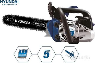 motosega hiunday cod.35020 da 25cc ottima per potatura a terra nuova con lama da 25 cm, con 24 mesi di garanzia ufficiale hyundai, sistema antivibrazione euro 5 a miscela 2 tempi, per info 3397980561 spedizione sicura con tutto subito