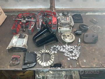 Motosega vintage, completa in tutte le sue parti, lama nuova, completamente pulita e messa a punto, perfettamente funzionante, assieme alla motosega, cedo anche tutti i ricambi che si vedono in foto di un'altra motosega identica.
